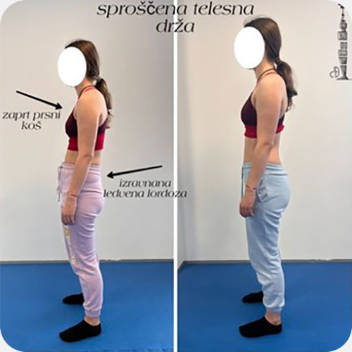 Po reaktivaciji posturalnih mišic se je njena drža, moč in splošno počutje znatno izboljšalo.