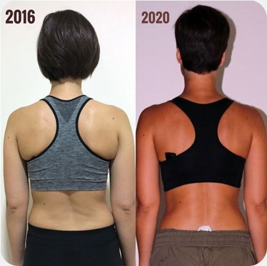 S prilagojeno vadbo in korekcijskimi vajami ter miofascialnim samosproščanjem so se ji bolečine zmanjšale za 80%.
