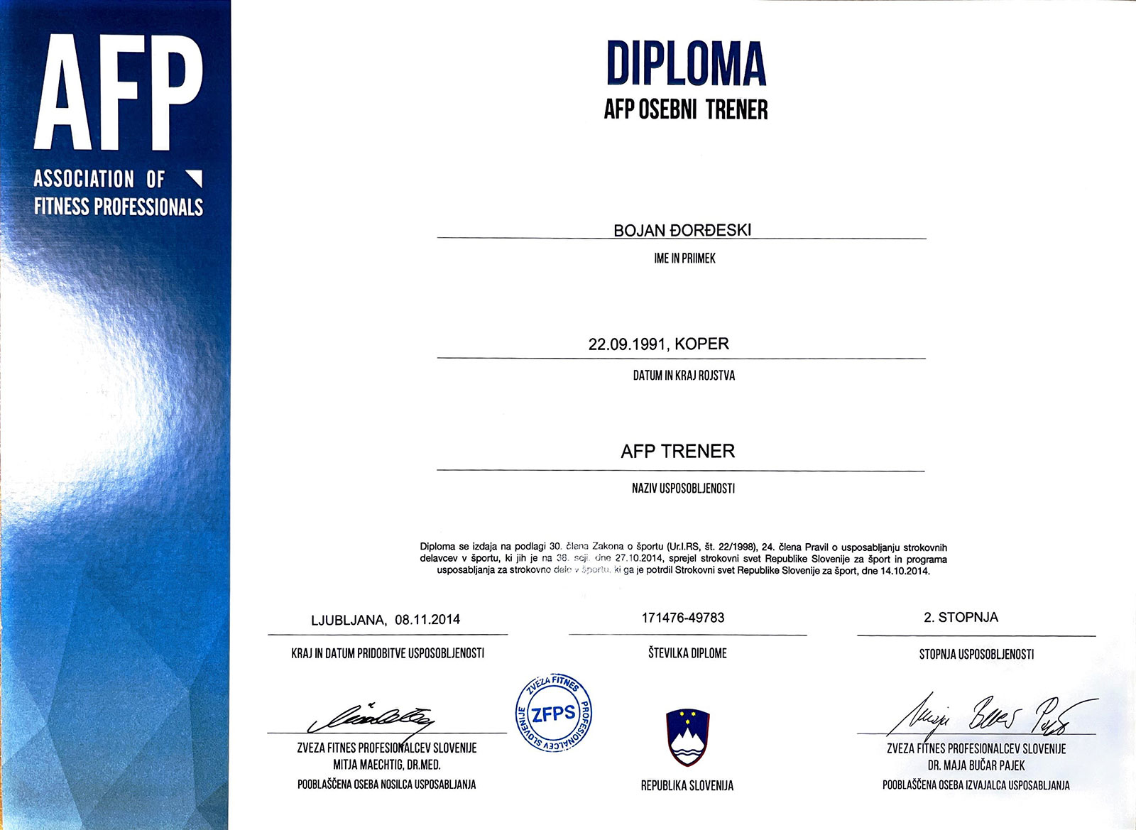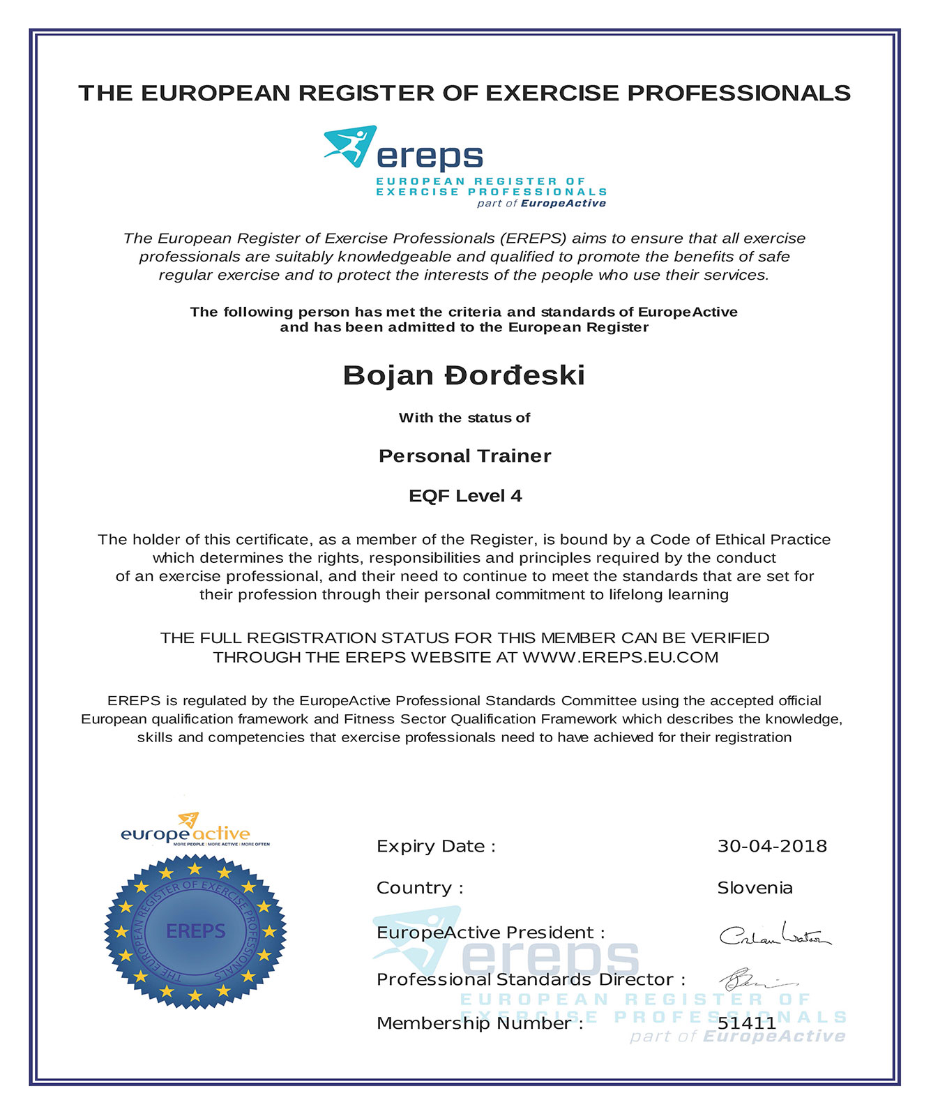 Bojan Đorđeski, deluje na področju osebnih obravnav že vrsto let. Po daljši športni karieri se je podal v fitnes vode in ugotovil, da je način treninga v športnih klubih in fitnes industriji nekoliko zastarel in tvegan za nastanek poškodb, obenem pa temelji na “starih” pravilih, ko je bilo znanja in informacij o telesu veliko manj kot jih je v današnjem času. Po končanem študiju Aplikativne kineziologije se je usmeril v funkcionalne vaje, ki upoštevajo biomehaniko gibanja človeškega telesa. Vse to je poglobil na tečajih Functional patterens, ki so pionirji na področju telesne drže, korekcijskih vaj in funkcionalne vadbe.