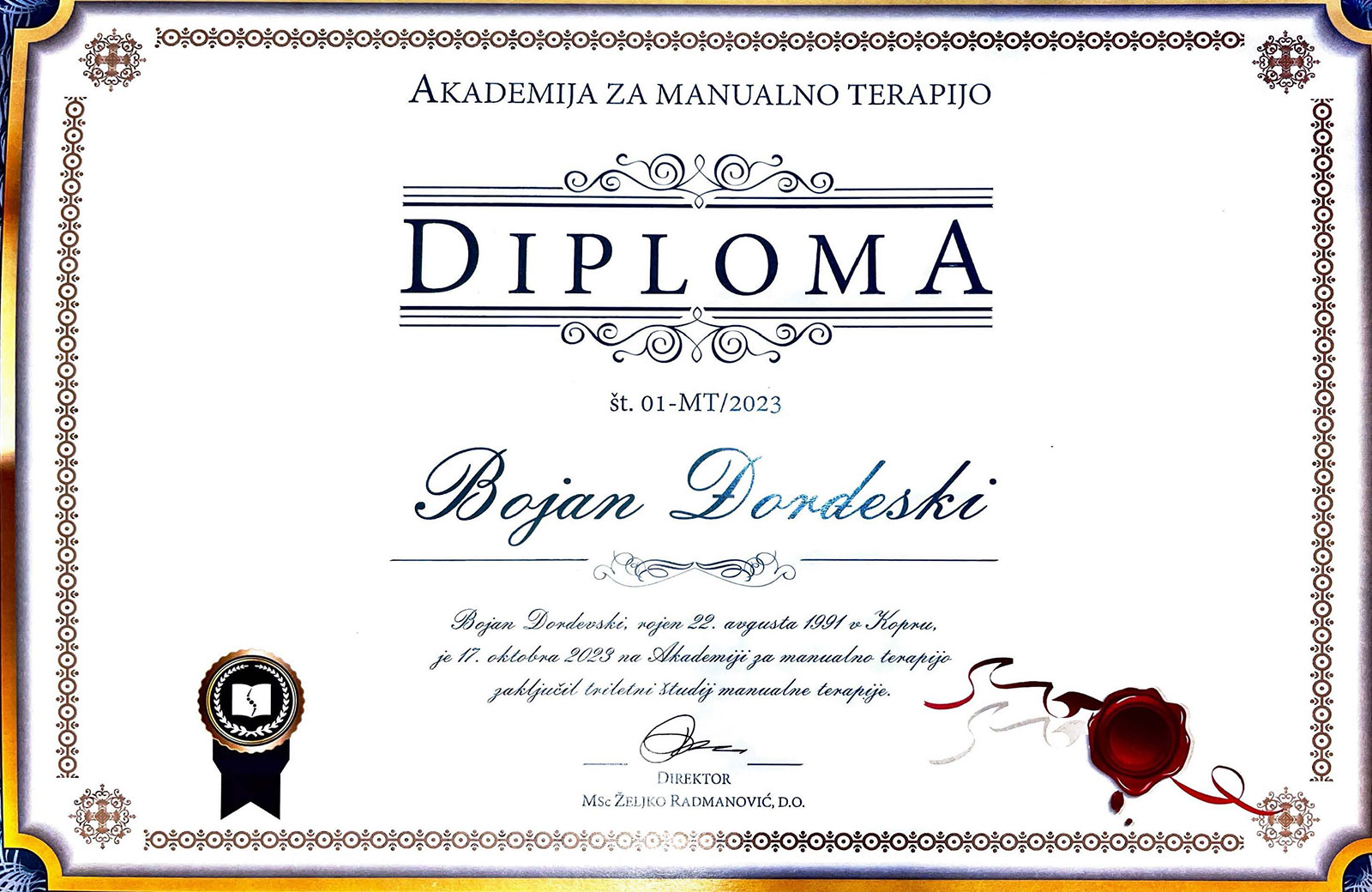 Doddatna znanja je pridobil na Akademiji za manualno terapijo in raznih tečajih kot so NCSF, NKT, Anatomy trains in raznih literatur vse z namenom ugotoviti zakaj so človeška telesa narejena kot so in kako najbolje poskrbeti za svoj skeletno mišični sistem za dolgoživost in dolgoročno zdravje.
